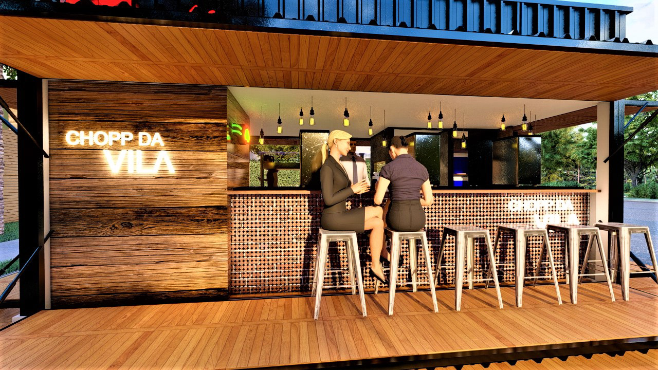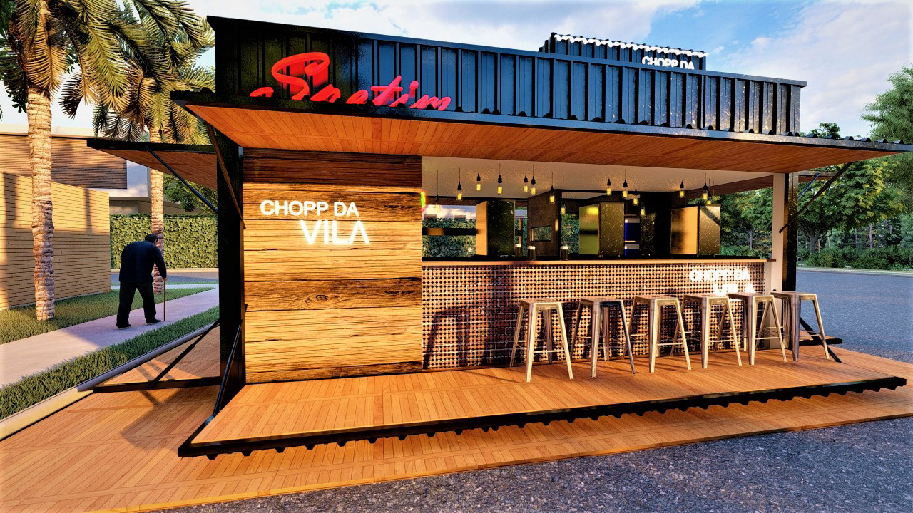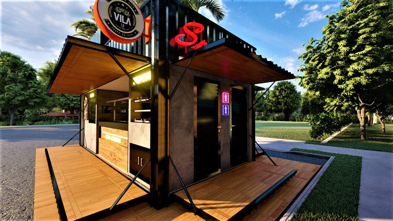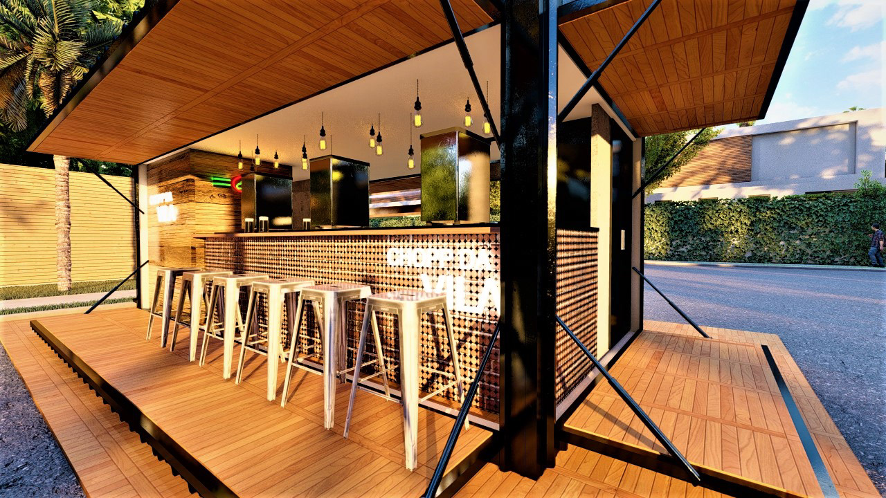 PROJETO MODULAR EM CONTEINER DE UM BAR E VENDA ALIMENTÍCIA, EXECUTADO PARA EMPRESA STEAK BULL E CHOPP DA VILA.