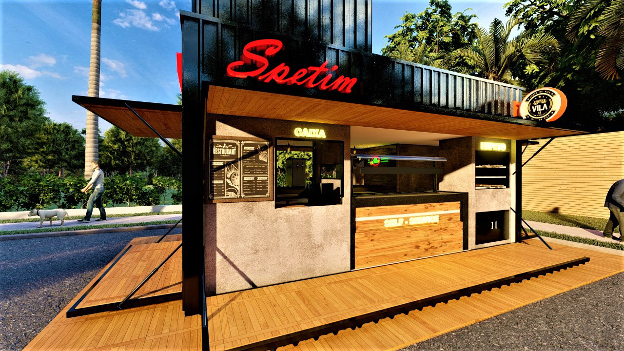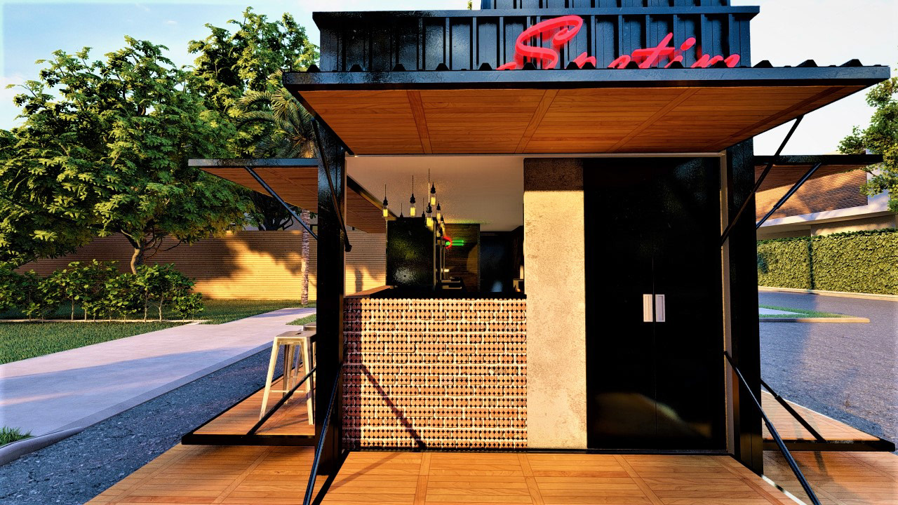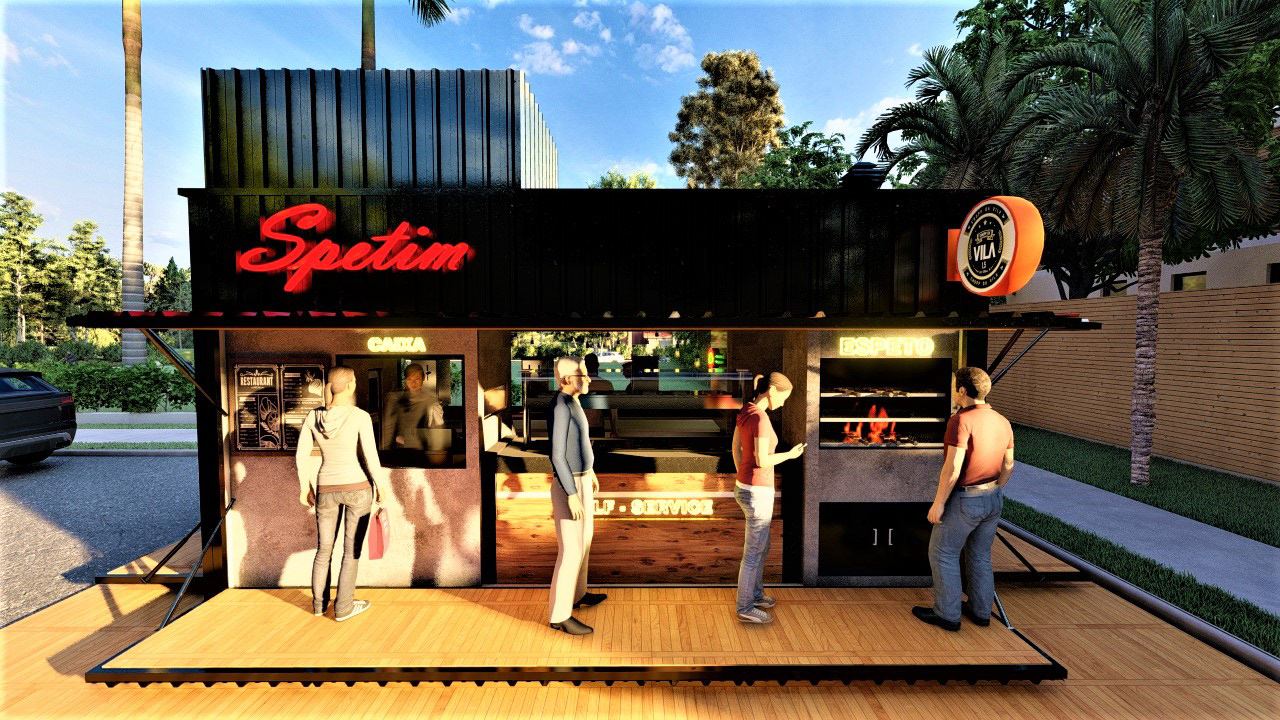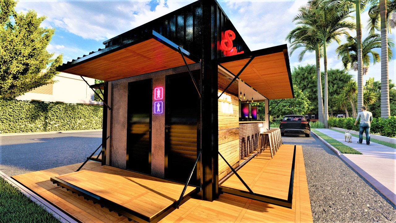 PROJETO MODULAR EM CONTEINER DE UM BAR E VENDA ALIMENTÍCIA, EXECUTADO PARA EMPRESA STEAK BULL E CHOPP DA VILA.
