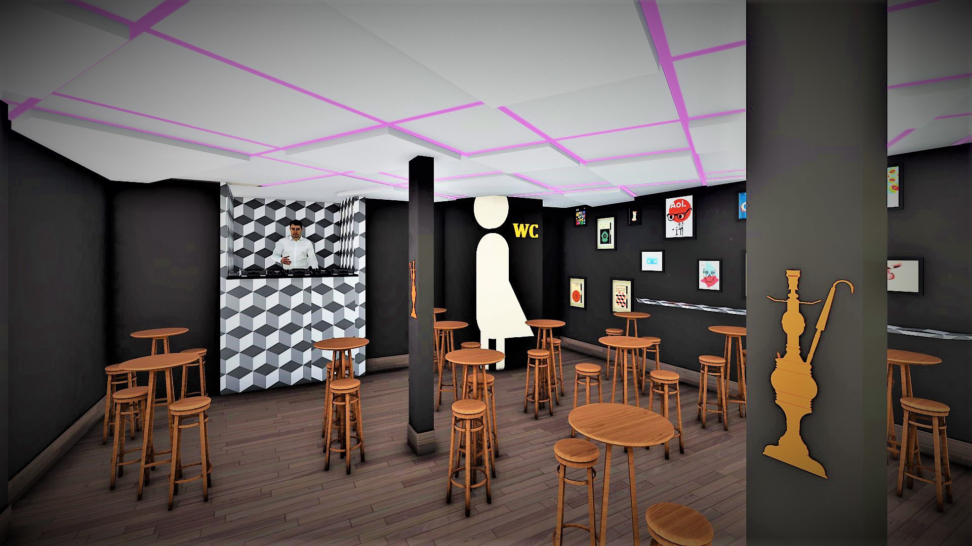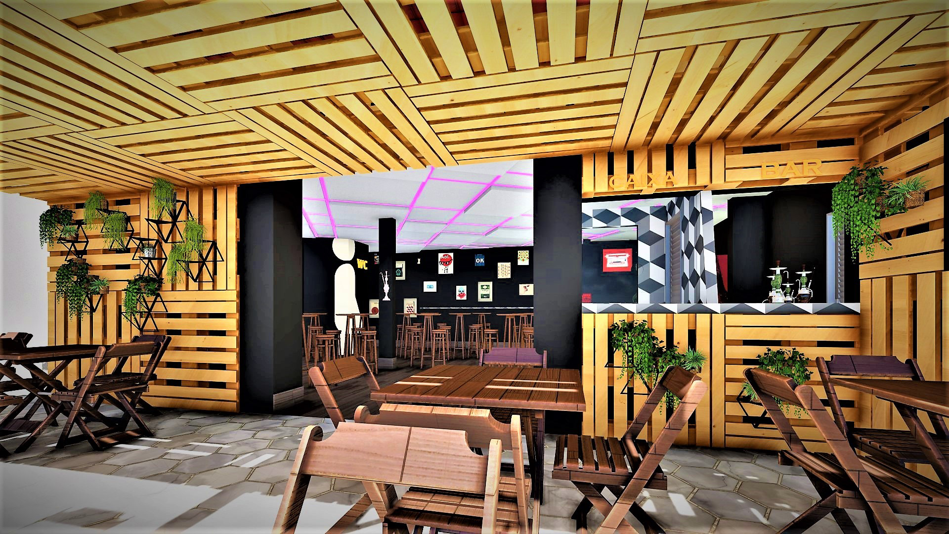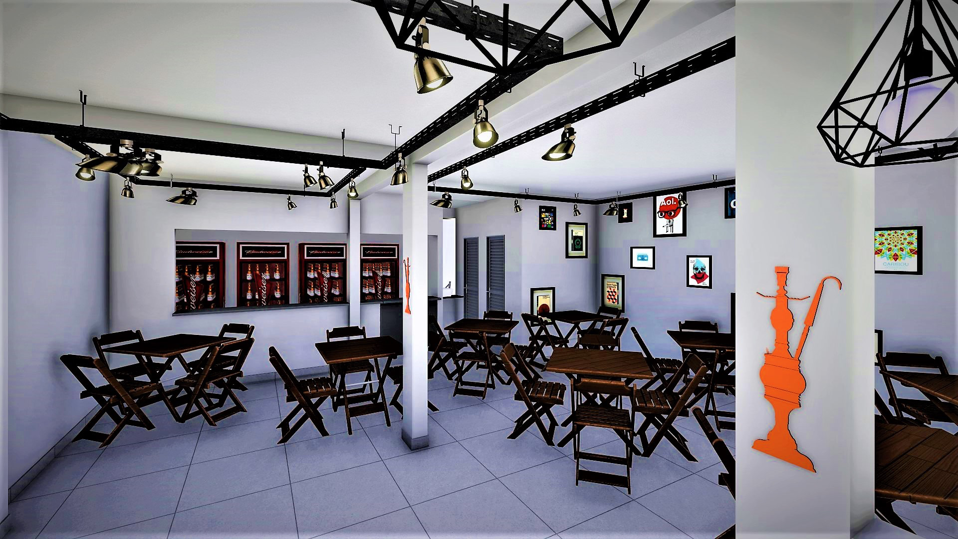 projeto arquitetônico para dukhan hookah e the don hamburgueria, localizado na vila planalto, Brasília - DF; duas propostas de execução;